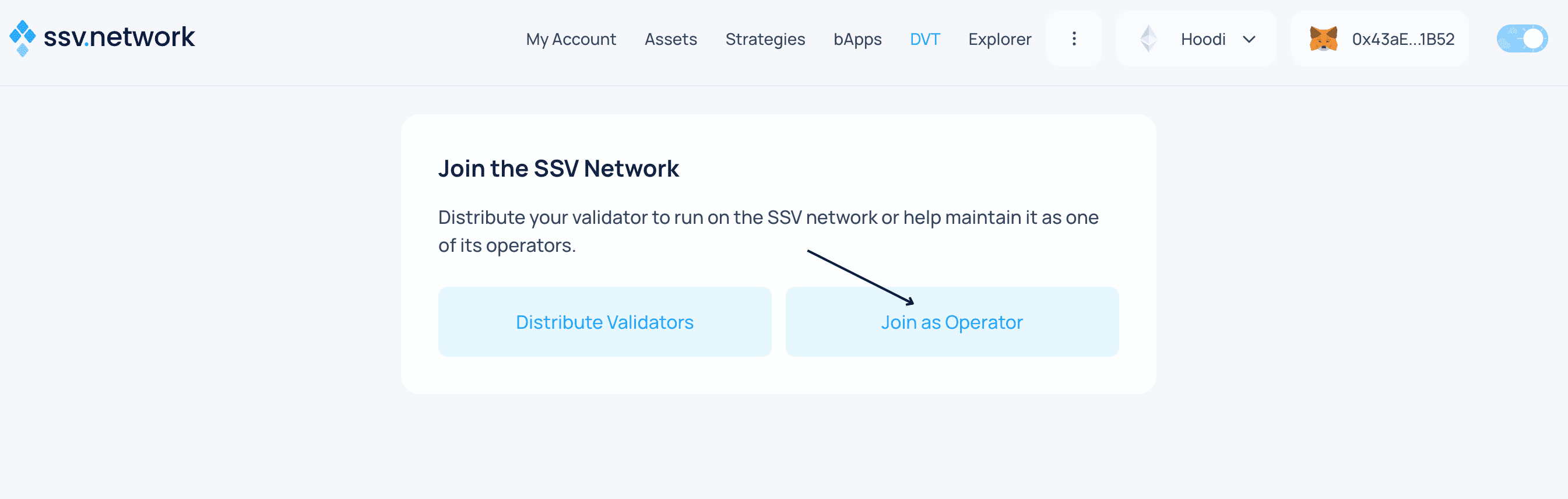 Becoming an SSV Operator involves generating keys, running the node software, and then registering as an operator through the SSV webapp ↗ to start earning rewards.